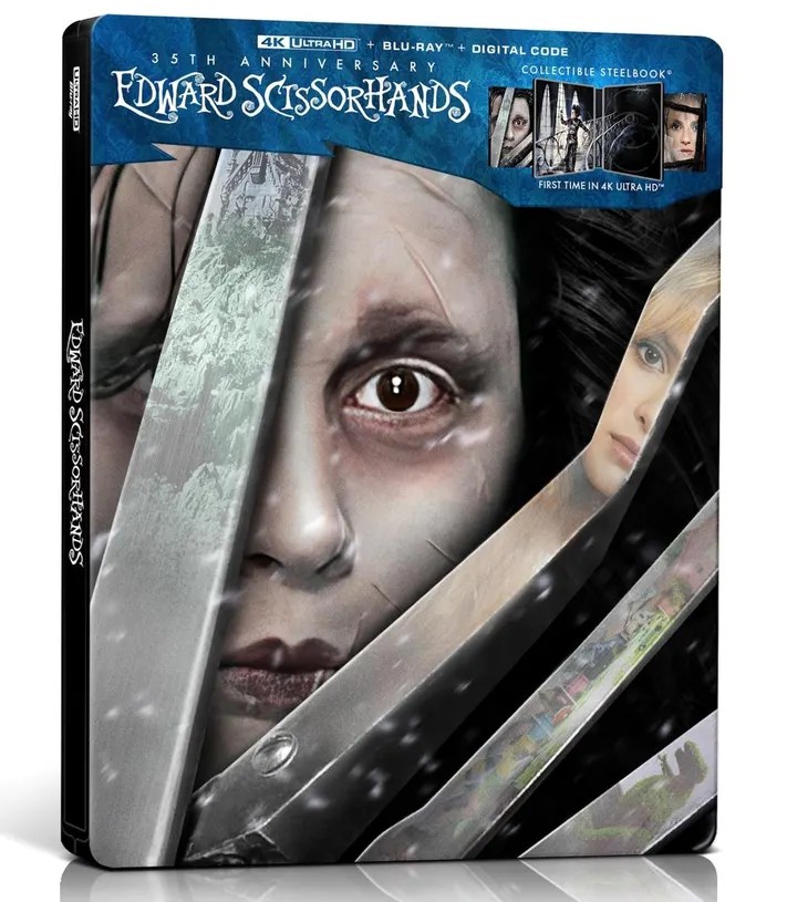 EDWARD SCISSORHAND is being released on Steelbook, which I love because it looks so awesome on the home entertainment library bookshelf! This is a film that has stayed in the hearts of everyone who first saw it in the 90s and is being seen by two more generations since in my family. It has actually on the list of Christmas films because it is so magical from Edward’s innocent look at the world to an ending that reminds us all that beauty can be found in the falling of snow, no matter where it comes from.